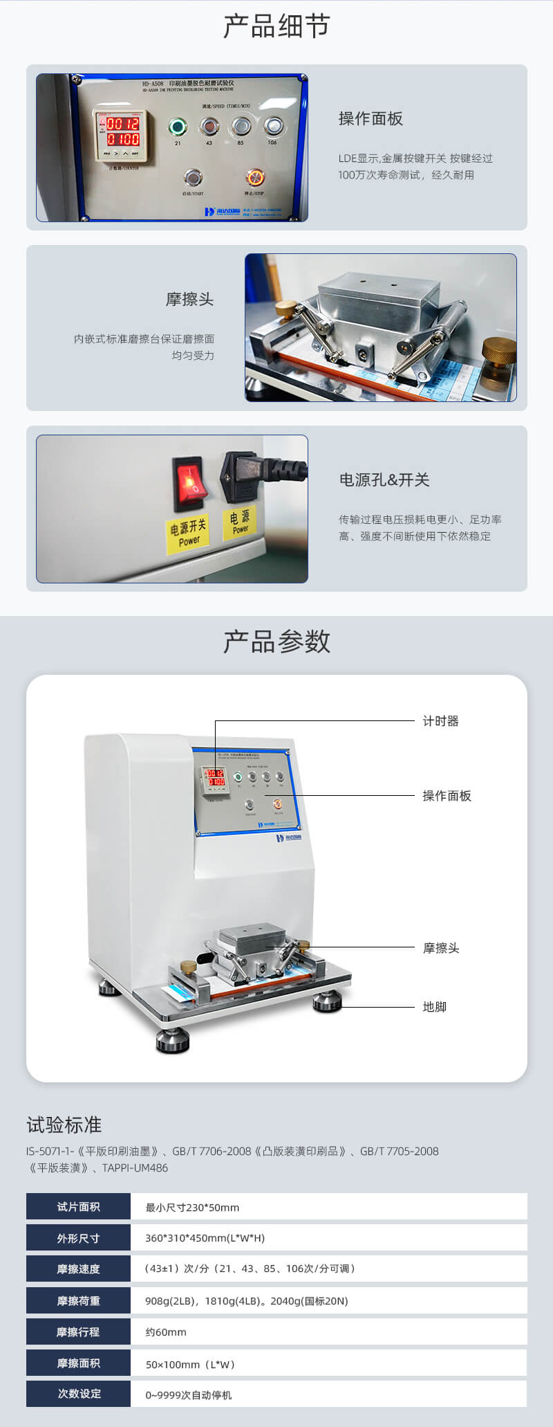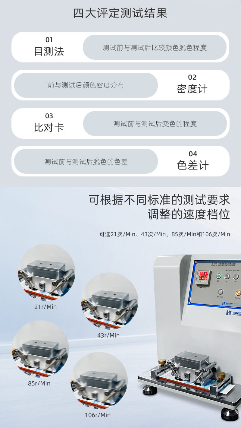 印刷油墨脫色耐磨試驗(yàn)儀主要適用于印刷品印刷墨層耐磨性測(cè)試。將標(biāo)準(zhǔn)尺寸的摩擦紙包于摩擦頭,以規(guī)定的速度、壓力等對(duì)試樣表面進(jìn)行摩擦,觀察試樣墨層脫落情況。