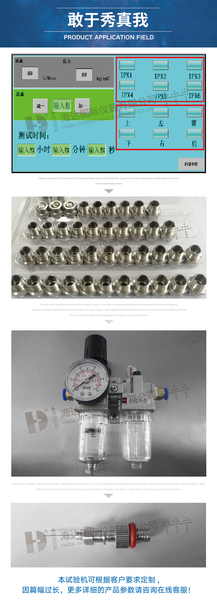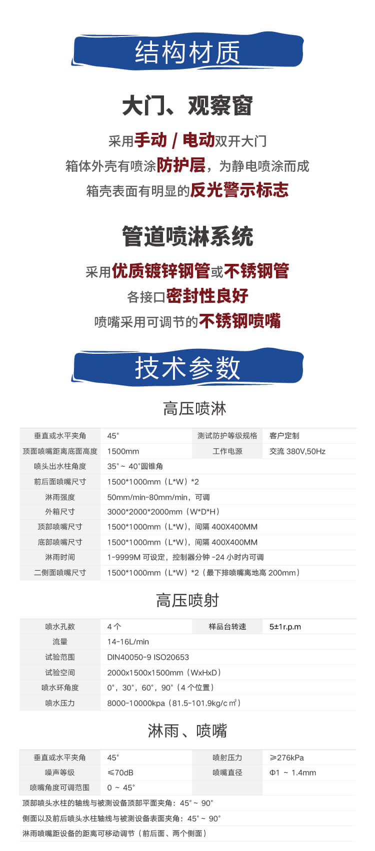 5、滴雨試驗室內部尺寸:W2500×D1500×H2000mm ;
