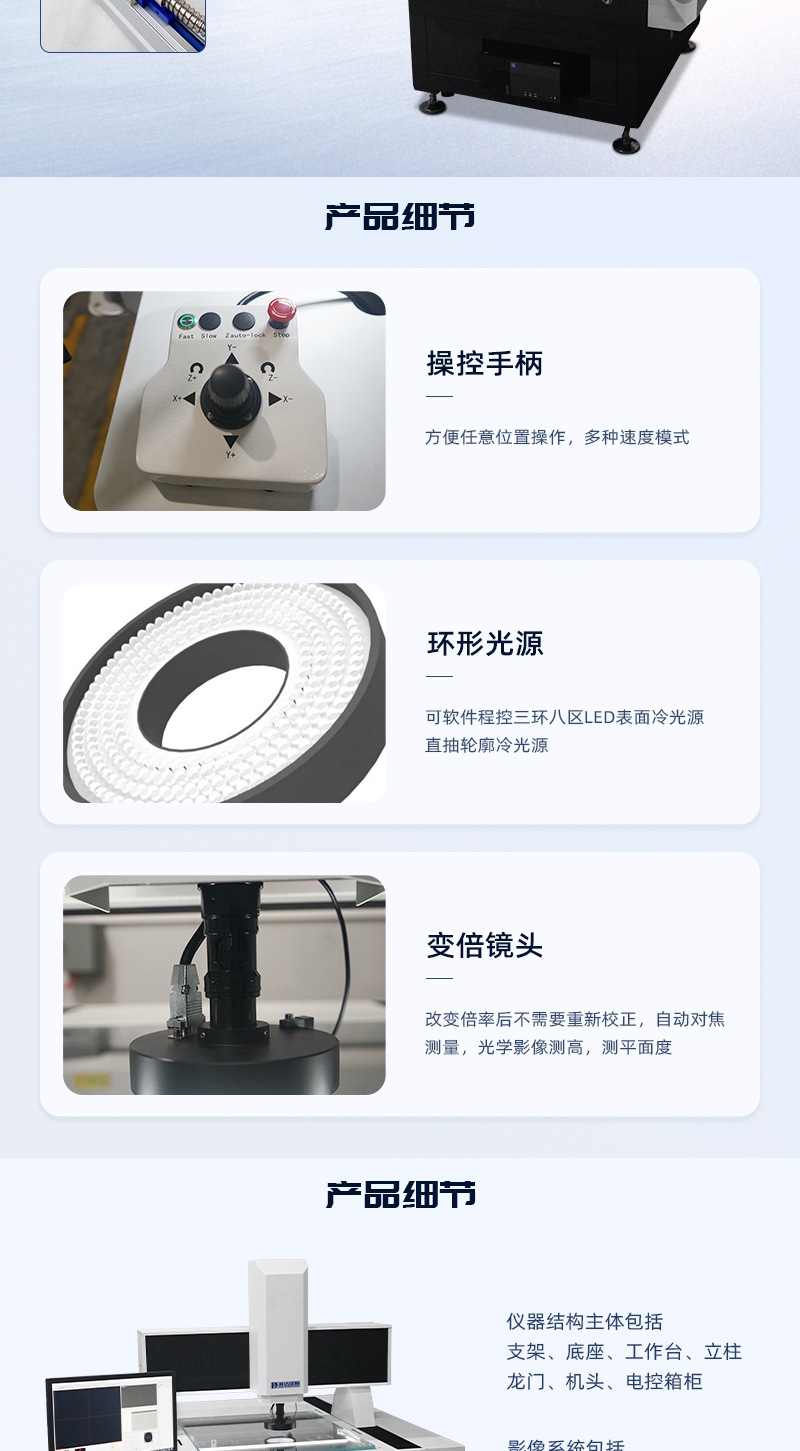 龍門式2.5次元影像測量儀是一種靈活的高精度測量設(shè)備,能夠快速有效的完成任何測量和檢測任務(wù),通過配置各種掃描和觸發(fā)測頭,能夠滿足各種計量要求,成為一種簡潔,快速,高效,高精度的測量設(shè)備。