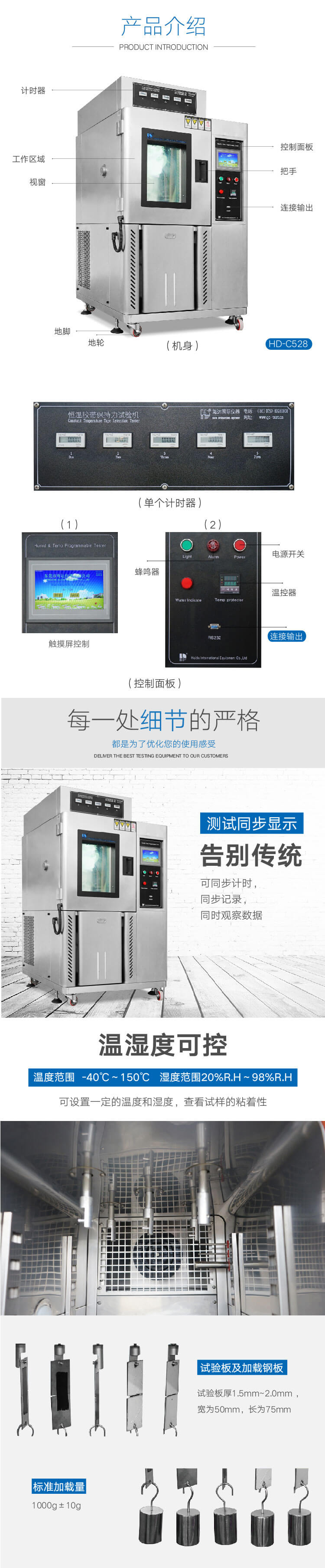 恒溫恒濕膠帶保持力試驗機主要用于測試試樣的抗粘連性,測試壓敏膠帶持粘性,靜態(tài)負荷試驗。將膠帶粘于試驗板上, 下端懸掛標準荷重,經一段時間自動計時后, 測量膠帶下滑距離或膠帶粘著時間用來評定膠帶粘著的持久性。