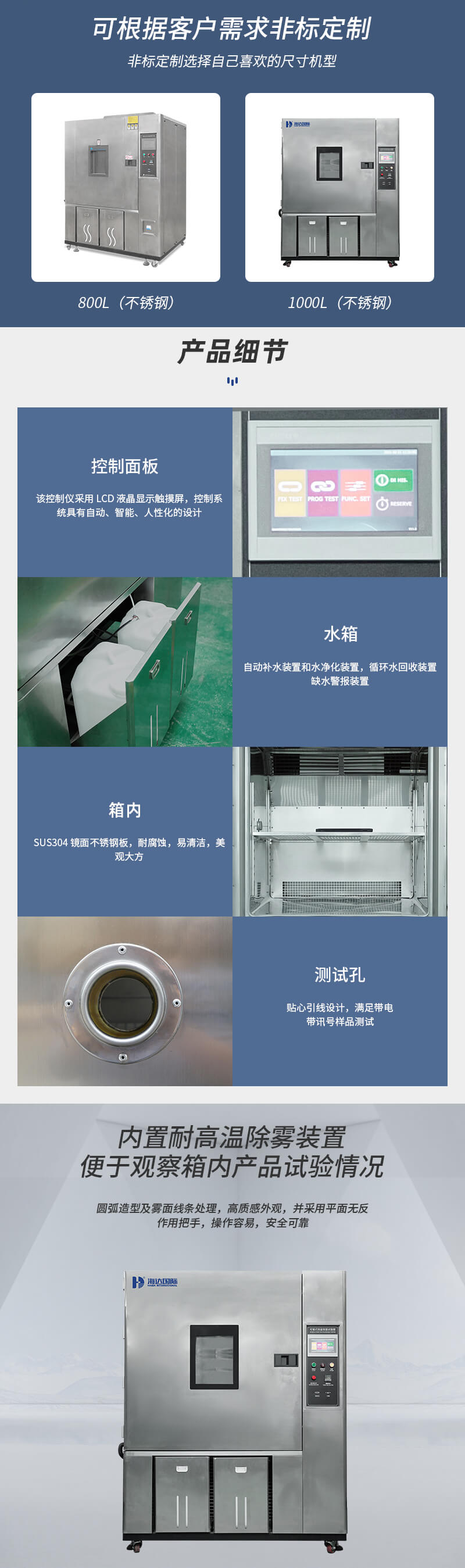 該系列不銹鋼款交變濕熱試驗箱,主要用于模擬新型材料、電工、車輛、金屬、電子產(chǎn)品等在運輸、儲存、使用過程中可能會遇到的嚴(yán)酷高溫、低溫或濕熱環(huán)境;或高溫、低溫、濕熱交變環(huán)境。