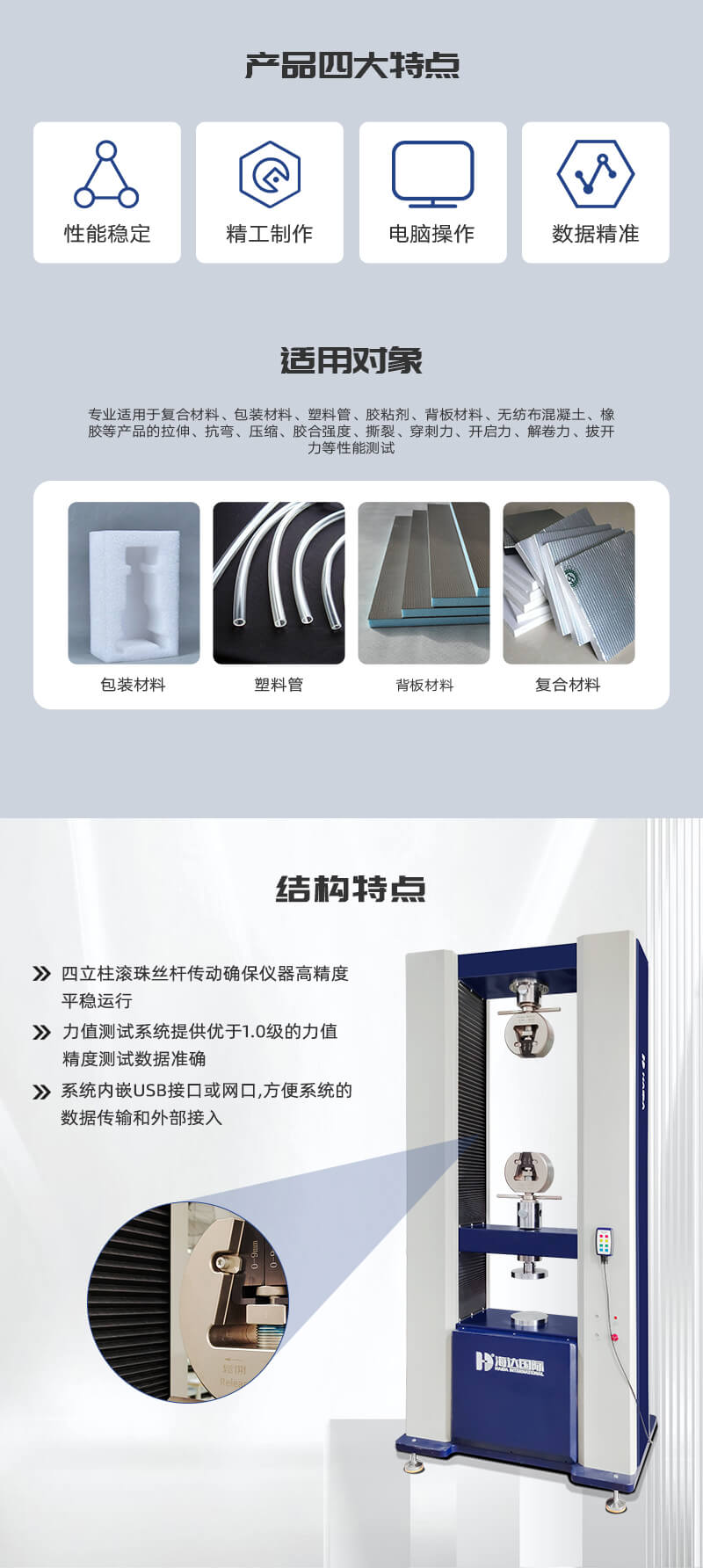 金屬材料萬(wàn)能拉力機(jī)適用于復(fù)合材料、包裝材料、塑料管、膠粘劑、背板材料、無(wú)紡布、混凝土、橡膠等高強(qiáng)度非金屬材料和醫(yī)療器械、線纜、鋼材等金屬產(chǎn)品的拉伸、抗彎、壓縮、膠合強(qiáng)度、撕裂、穿刺力、開啟力、解卷力、拔開力等性能測(cè)試。