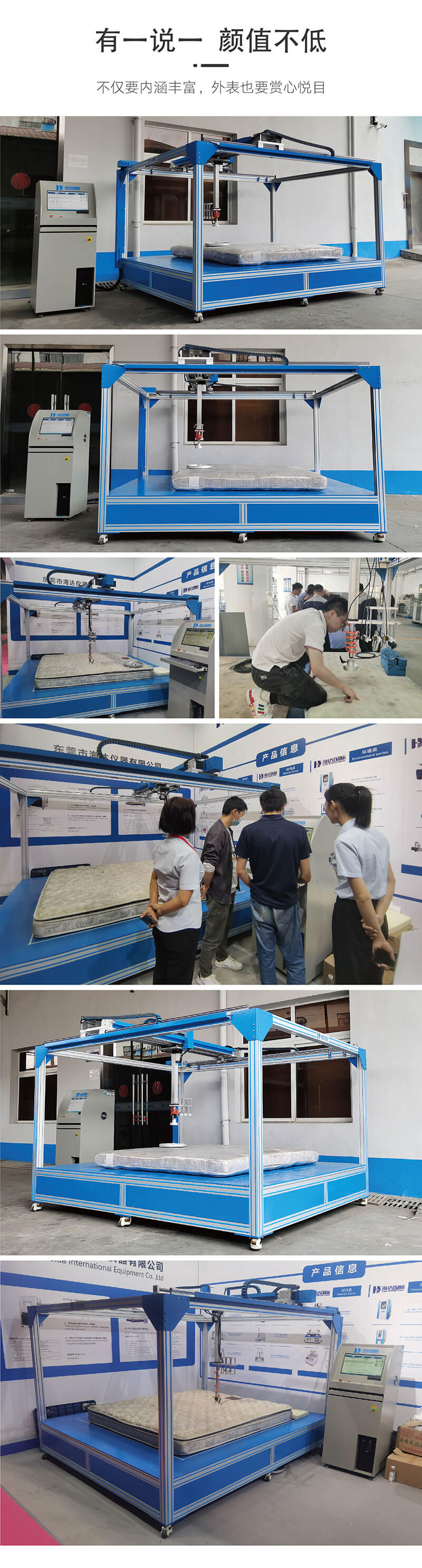 床墊貼合度綜合試驗機用于對家庭、酒店、旅館、飯店等場合使用的彈簧軟床墊和發(fā)泡型床墊進行出廠成品檢測,對床墊硬度和滯后損失率及貼合度進行測試,測試完成后根據(jù)測試評定試樣的等級。