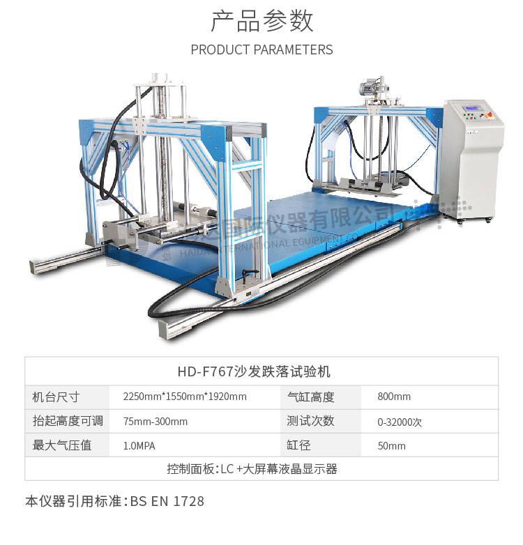 沙發跌落試驗儀評估沙發跌落后木架是否損壞。